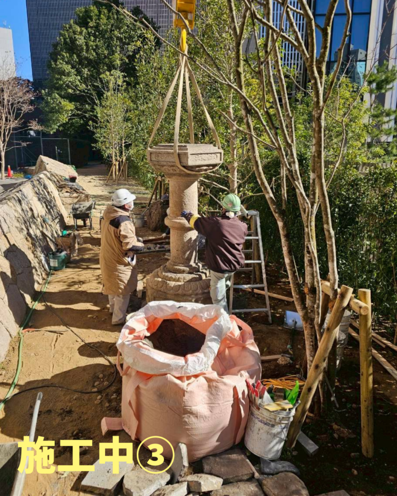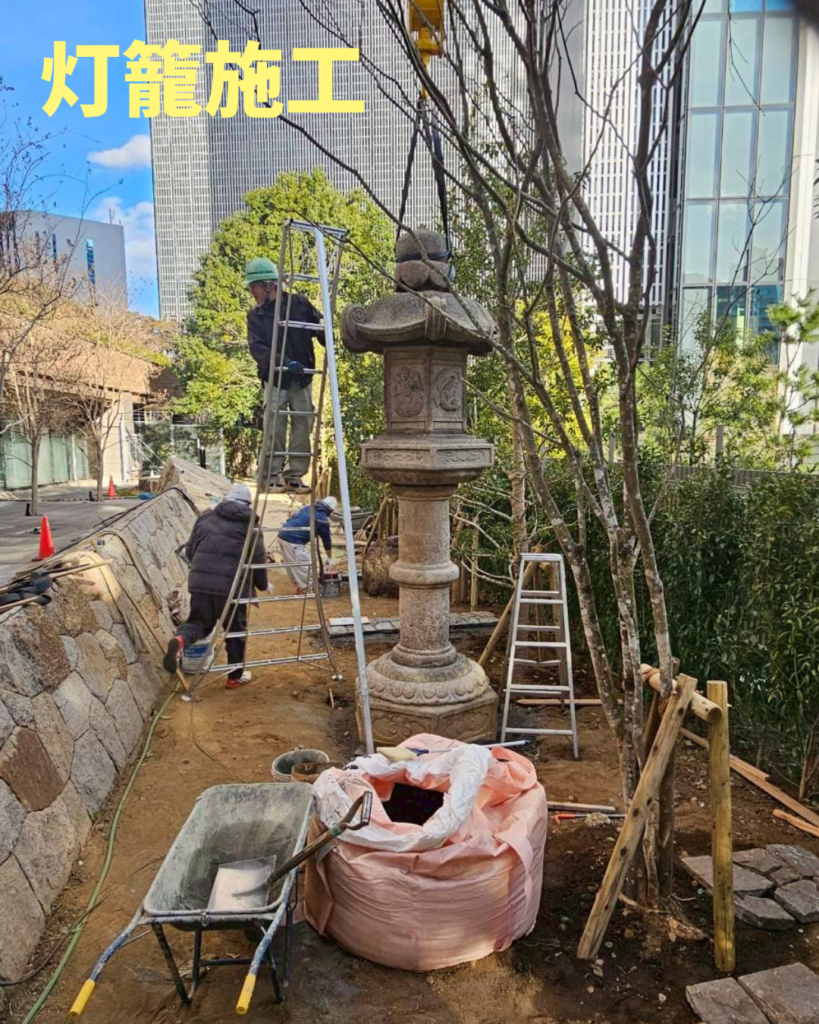 こんにちは!早稲田技研です🪵🌲 今回は港区にて、灯籠組立て作業のご依頼をいただきました!