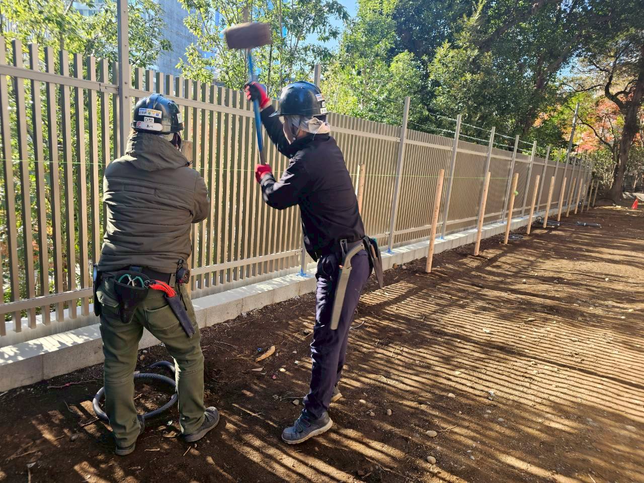 生け垣作成のご依頼をいただきました。 キンモクセイの生け垣となっております。 通りが曲がらないように、高さ、幅、結束など気を付け作業を行いました。 今回もありがとうございました。