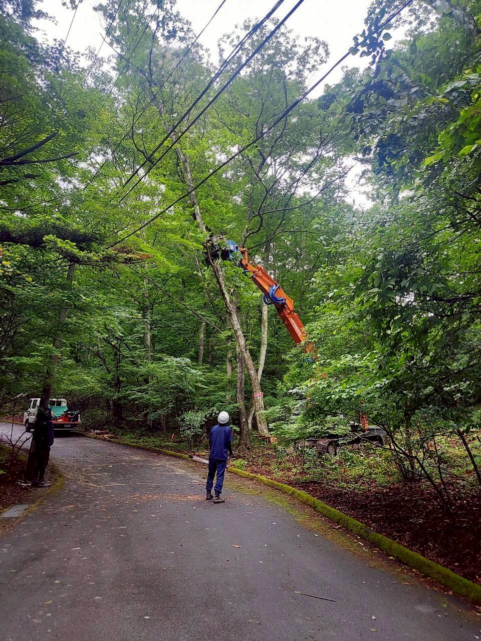 長野県軽井沢にて、枯れた樹木の伐採をメインとして行いました。 また、残す樹木のすぐそばにあるような樹木も伐採しました。理由としては、残す樹木を大きく育てるためです。