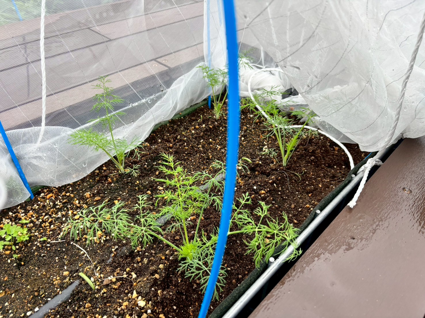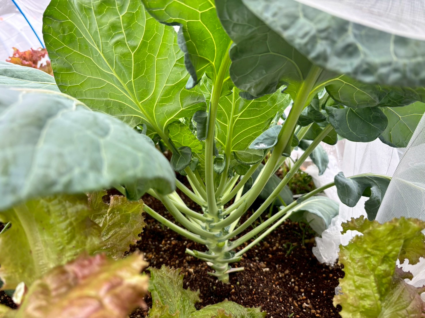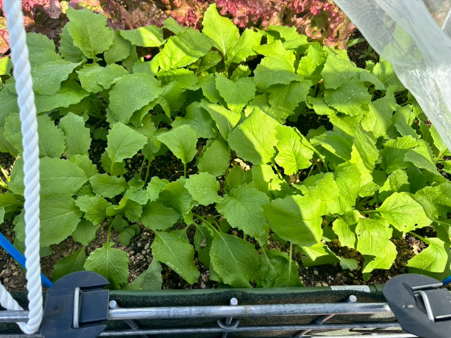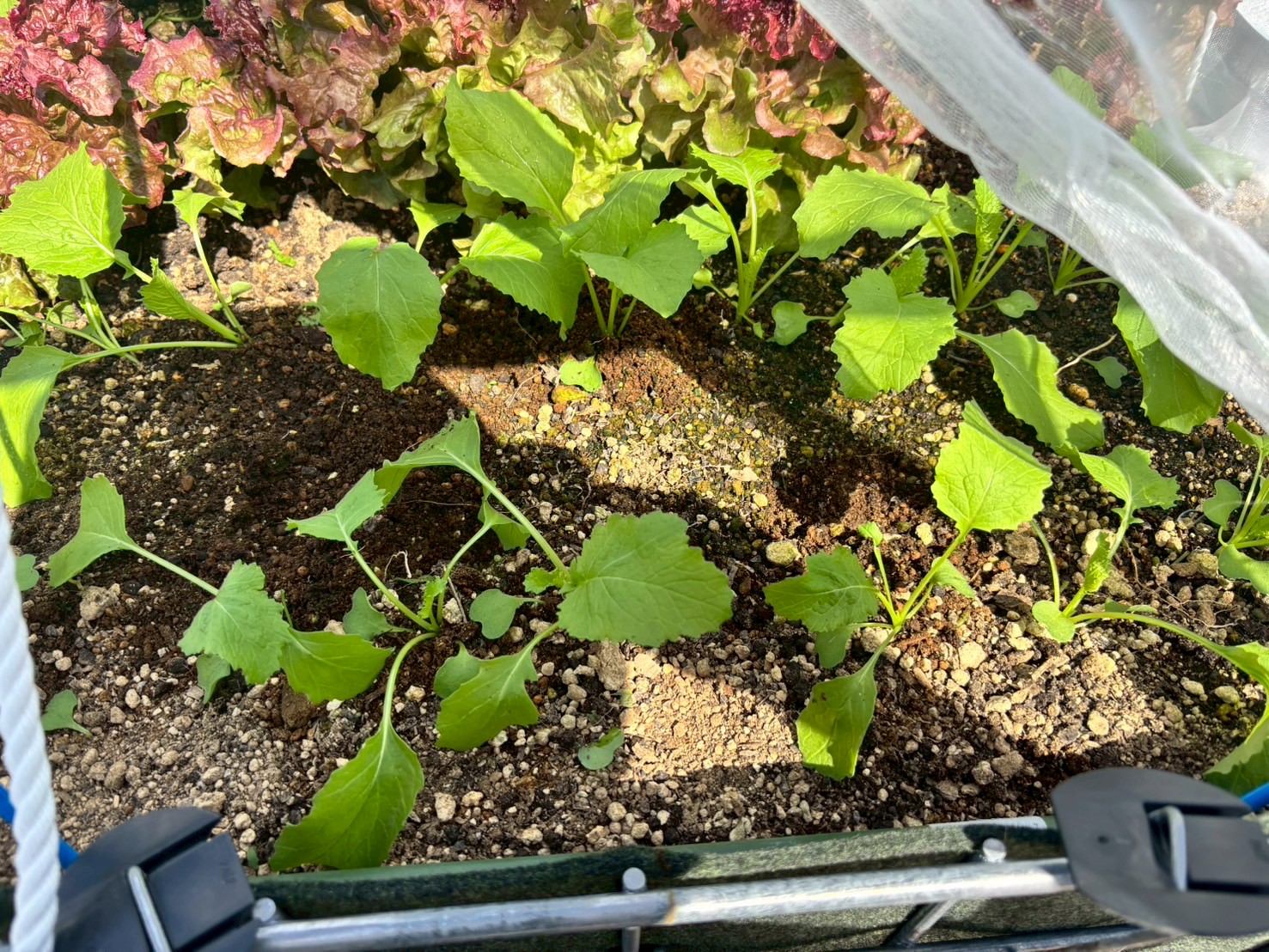 野菜を育てるうえで、野菜と野菜の間隔が大切になってきます。混みあっていると蒸れて病気が出やすくなったり、大きく育ちません。そのために、葉が混みあえば間引いたり、枯葉をとったり日々の管理が大切です。