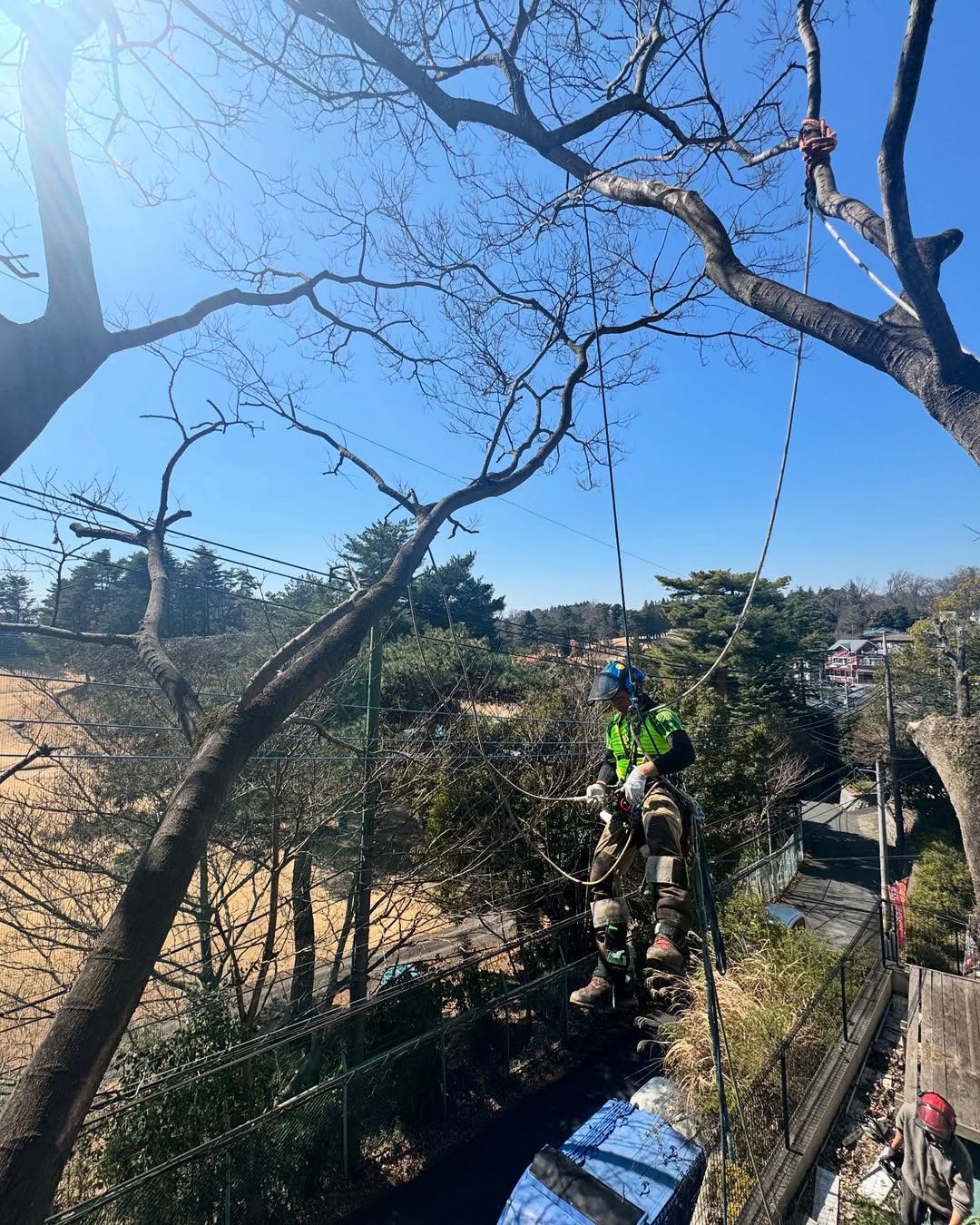 本日所沢市にてエノキの特殊伐採作業でした。高さはありませんでしたが、ソーラーパネル、電線、窓と障害物が多く安全に枝落としするために、頭脳戦でした。豪快な伐採もいいですが、思い描いた通りに切れる伐採も達成感ありますね。