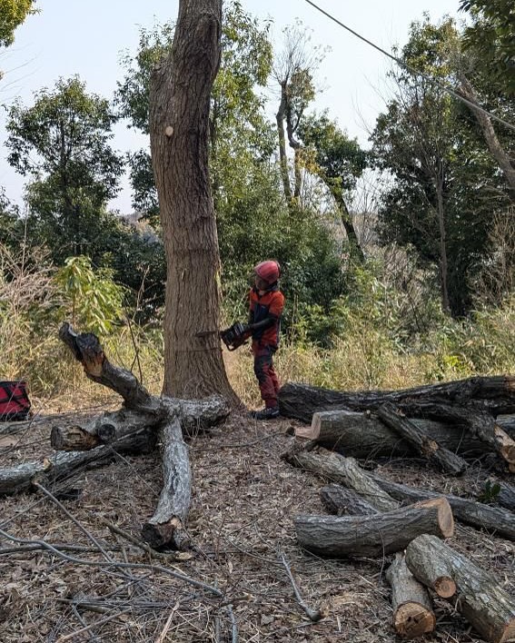 守谷市にてナラ枯れの進んだ危険木のコナラ2本を伐採しました。 特殊伐採作業でした。現場は開けていて、ドロップエリアも広かったので、 大きく豪快に切らせてもらえました。