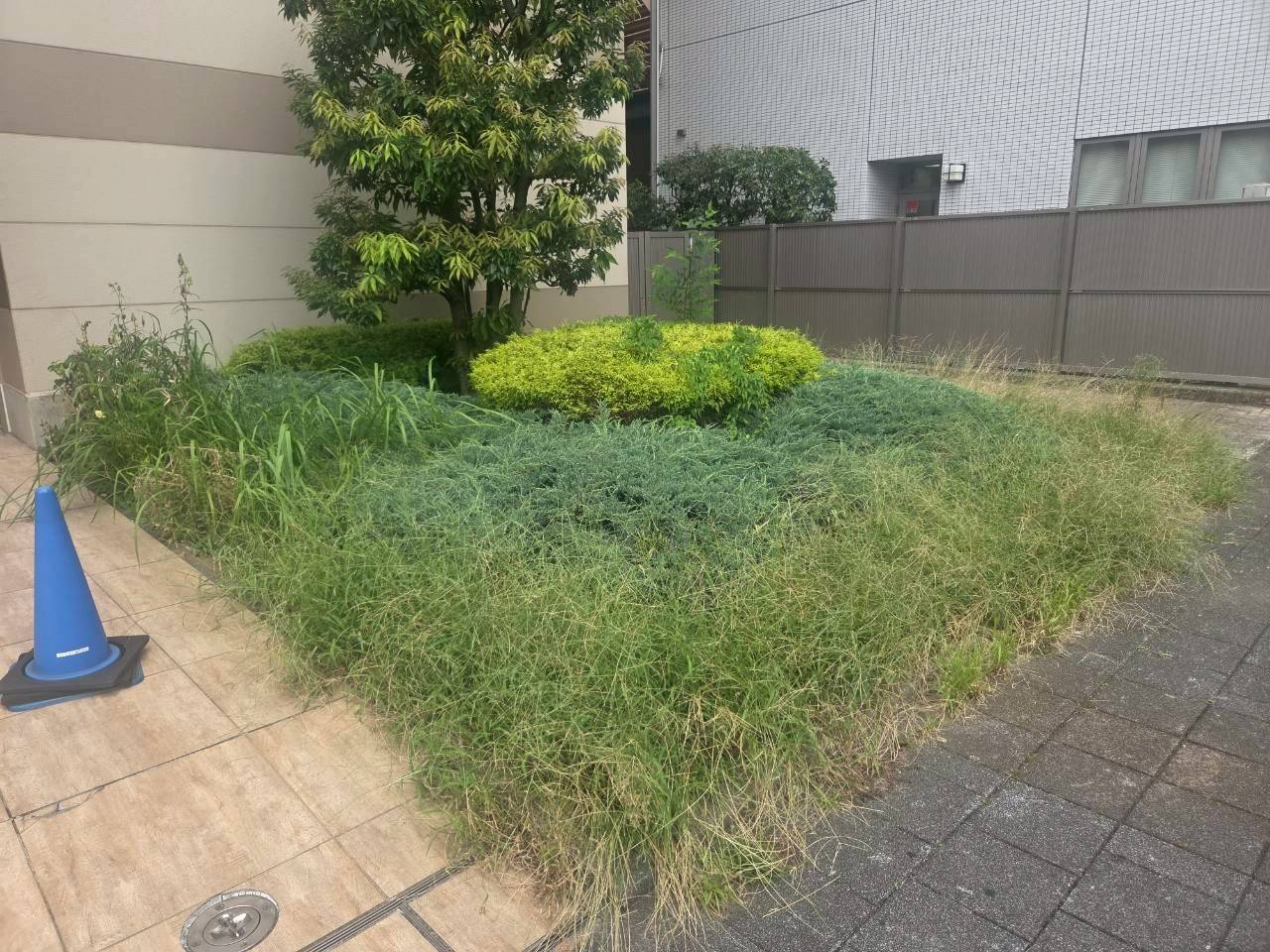 埼玉県八潮市の商業施設にて除草作業を行いました。作業を行うことですっきりとしました。通行者の方に十分気を付けながら作業を行いました。