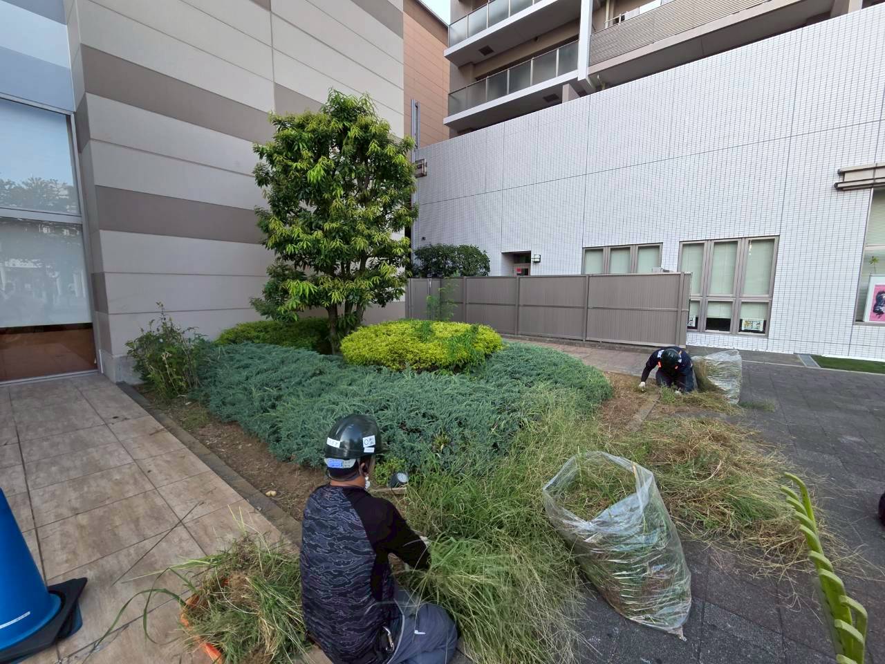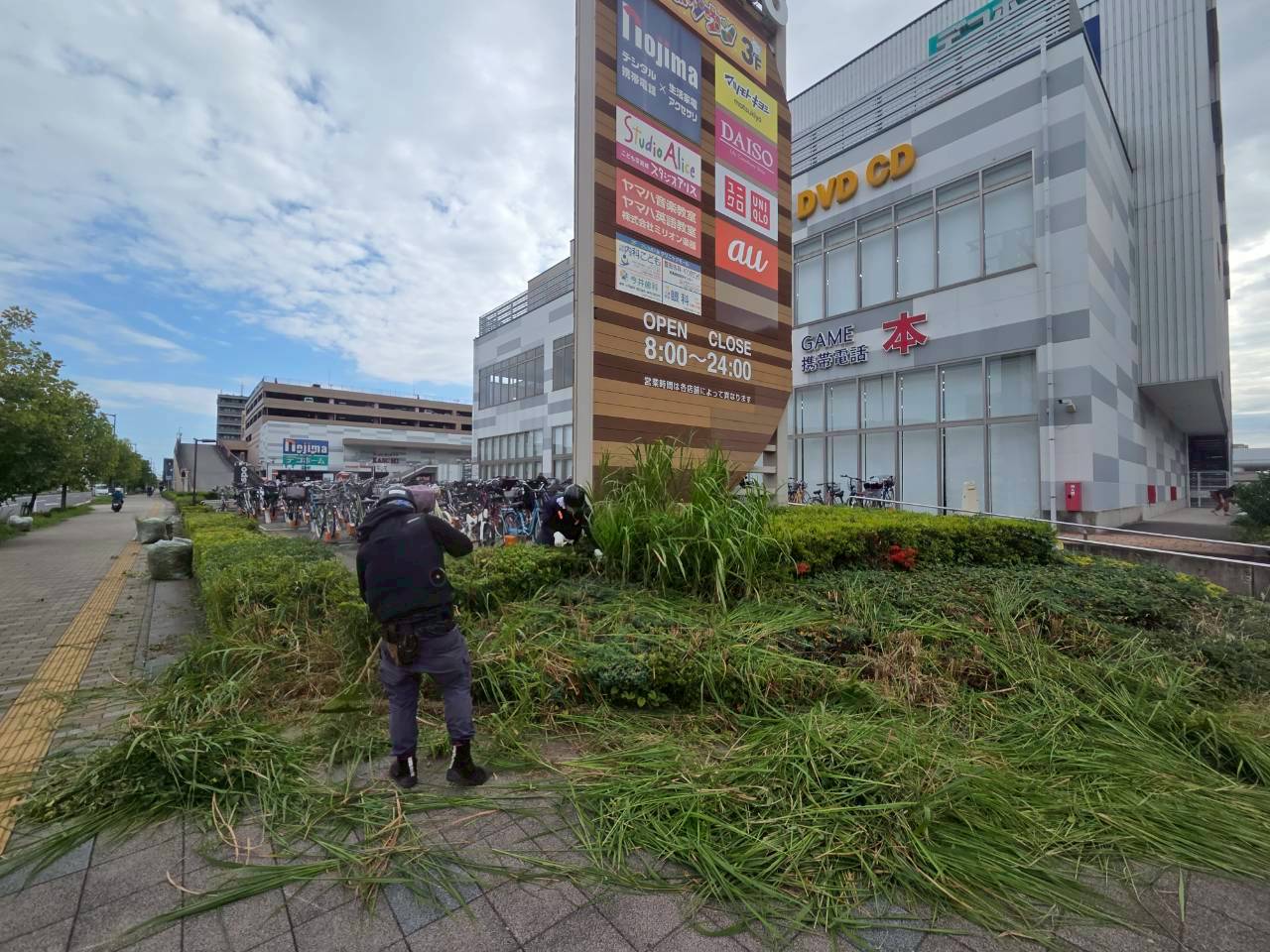 商業施設周辺の除草作業
